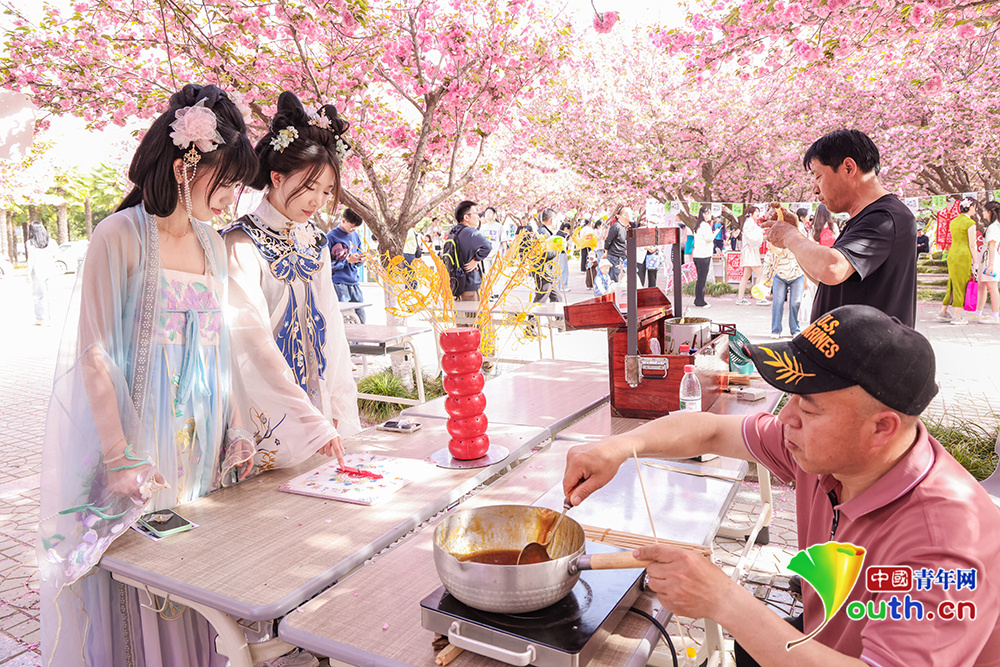 特别值得称道的是,樱花节现场出格设置了“三秦非遗大舞台”,使保守艺术取现代创意碰撞生辉,绽放出别样的荣耀。长安古乐《郁金喷鼻》揭开序幕,编钟取电子乐交融,仿佛让人们听到了汗青取现代的回响辉映;秦腔折子戏《忠保国》唱腔高亢激动慷慨,“吼”出的不只是戏文,更是秦人耿曲坚韧的性格;华阴老腔《太阳圆月亮弯都正在天上》《将令一声震山水》的吼声撼动全场,老艺人们手持月琴、惊堂木,用黄土高坡上“最早的摇滚”唱出关中儿女的激情;陕北平话艺人乔仰文、邵艳霞怀抱三弦,以悠扬的说唱声,将不雅众带回到了黄土高原的沟壑纵横中…。
