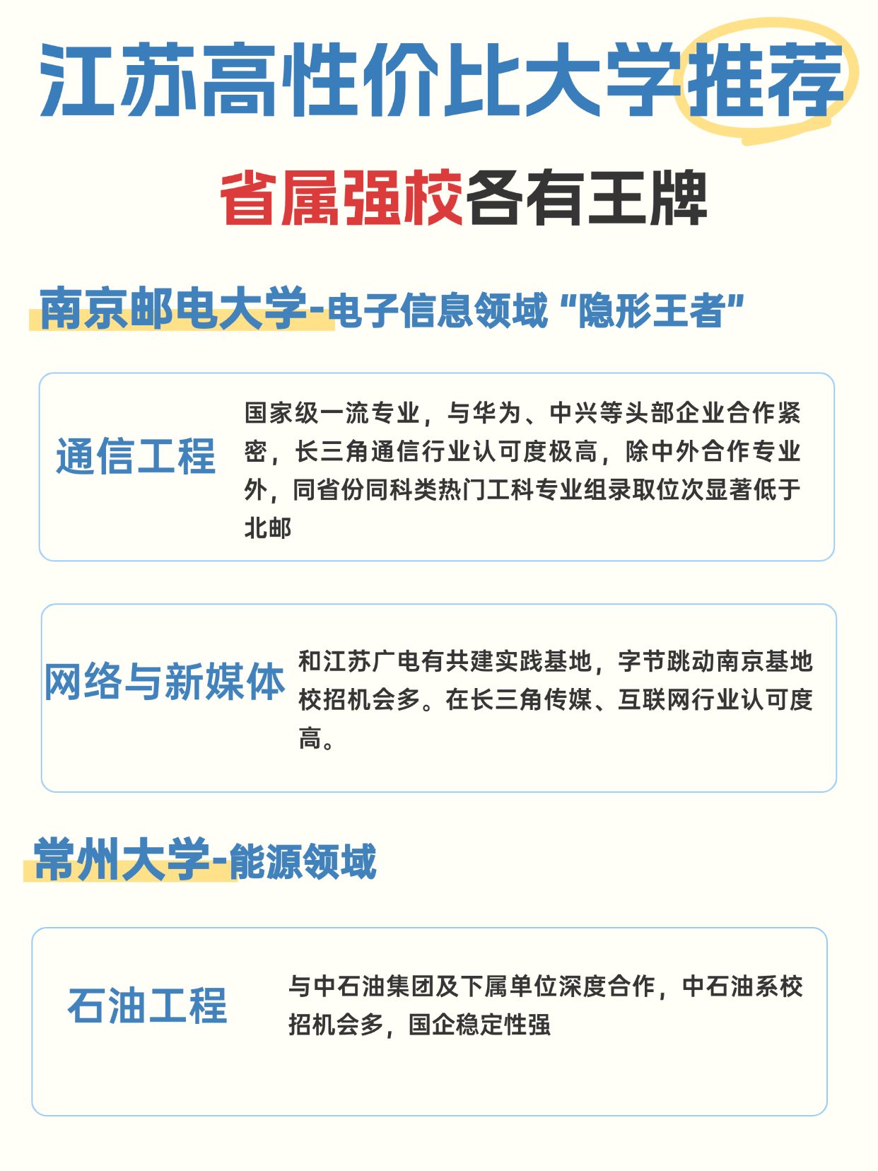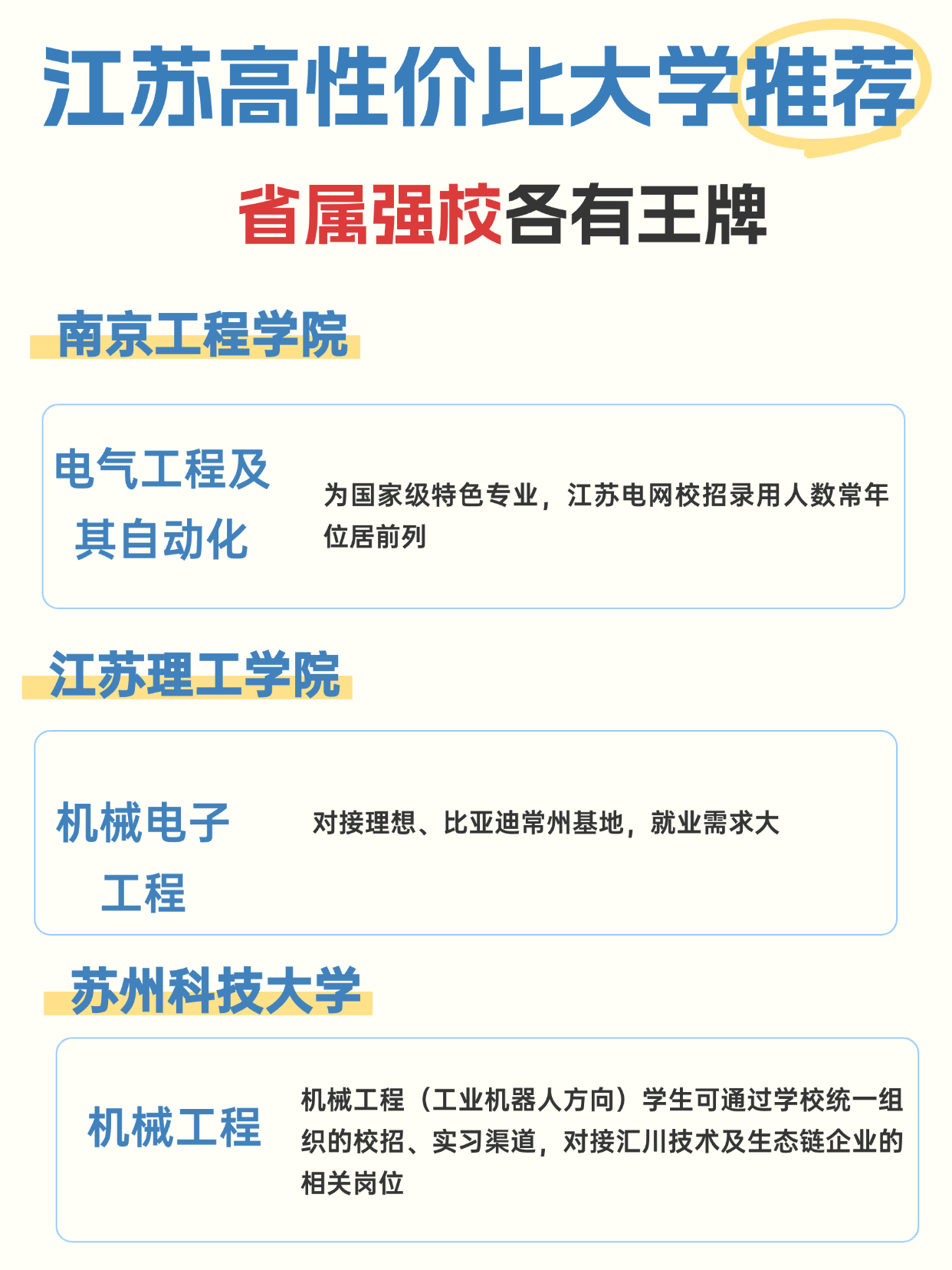 提到江苏高校,良多人只晓得南大、东大,但对大都考生来说,这些省属强校才是 的宝藏之选!江苏的省属高校深耕当地财产几十年,和龙头企业绑定慎密,笼盖理工、财经、师范。