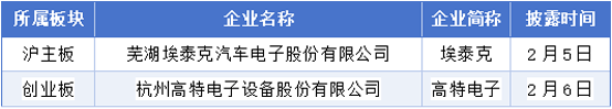 芜湖埃泰克汽车电子股份无限公司是一家行业领先的汽车电子智能化处理方案供给商,出产及发卖,同时为客户供给汽车电子 EMS 和手艺开辟办事,产物笼盖车身域、智能座舱域、动力域以及智能驾驶域四大焦点功能域。杭州高特电子设备股份无限公司是一家以手艺立异为驱动的国度级高新手艺企业和专精特新“小巨人”企业,面向新能源财产供给平安、靠得住、高效、不变且更具经济性的新型储能电池办理系统相关产物,持续三年正在大型储能范畴 BMS 产物出货量连结行业前列,努力于成为全球领先的新型储能系统平安取价值提拔处理方案的焦点供应商。