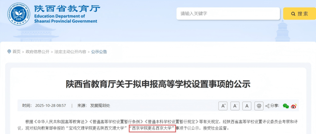 值得留意的是,目前全国高校中,仅5所平易近办通俗本科以“大学”为名:西湖大学、宁波东方理工大学、福建福耀科技大学、外国语大学、仰恩大学。若“西京大学”正式成立,也将成为“贵重”一员。
