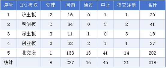 截至2月8日,IPO列队企业318家,此中沪从板列队企业20家,科创板列队企业41家,深从板列队企业18家,创业板列队企业37家,北交所列队企业202家。