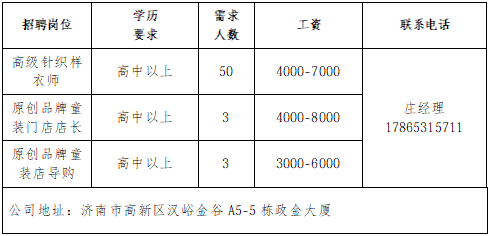 为充实阐扬人力资本社会保障部分保企业用工、稳就业形势感化,帮帮赋闲人员、零工群体、由市人力资本社会保障局从办,市公共就业办事核心承办的总部坐落于济南市高新区汉峪金谷,具有服拆商业公司、服拆出产加工、手艺研发核心、现有员工人数4000余人,是一家集设想研发、3D虚拟样衣、精益化出产、检品后整为一体的服拆ODM供应链集团公司。